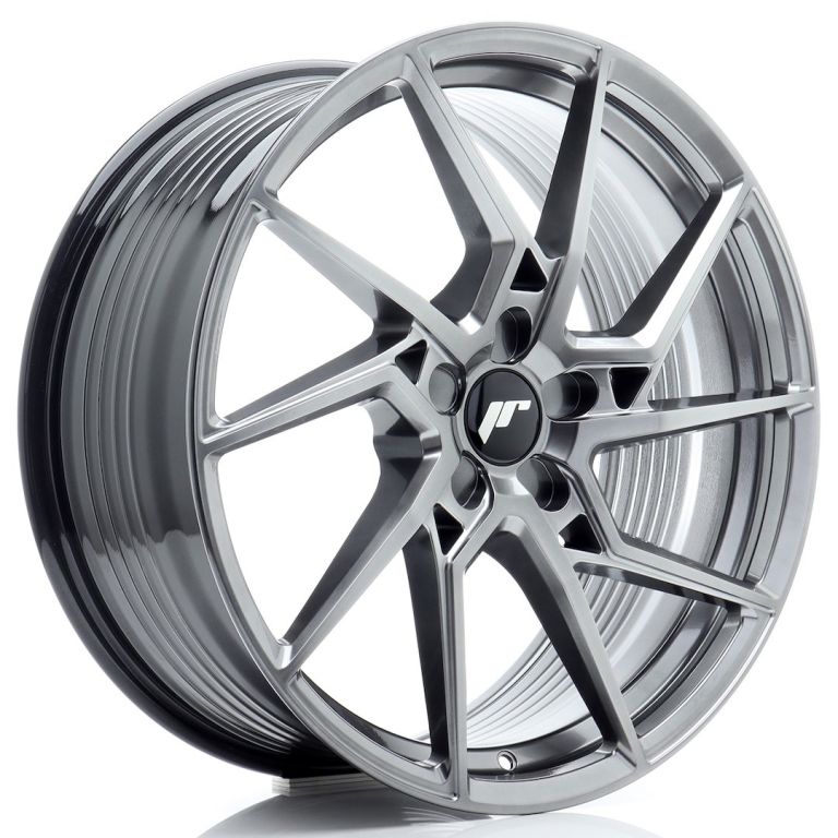 Die auf dem ersten Blick technisch aussehende JR33 Felge, entpuppt sich als eine schöne konkave Felge mit geschwungenen, fast turbinenartigen gegabelten Speichen. Diese erstrecken sich dabei aus einem filigran aufgebauten, optisch eingelassenen, fünf Stern Mittelteil bis hin zur letzten äußeren Kante. Dies macht die JR-33 zu einer aufregend, einzigartigen Felge.